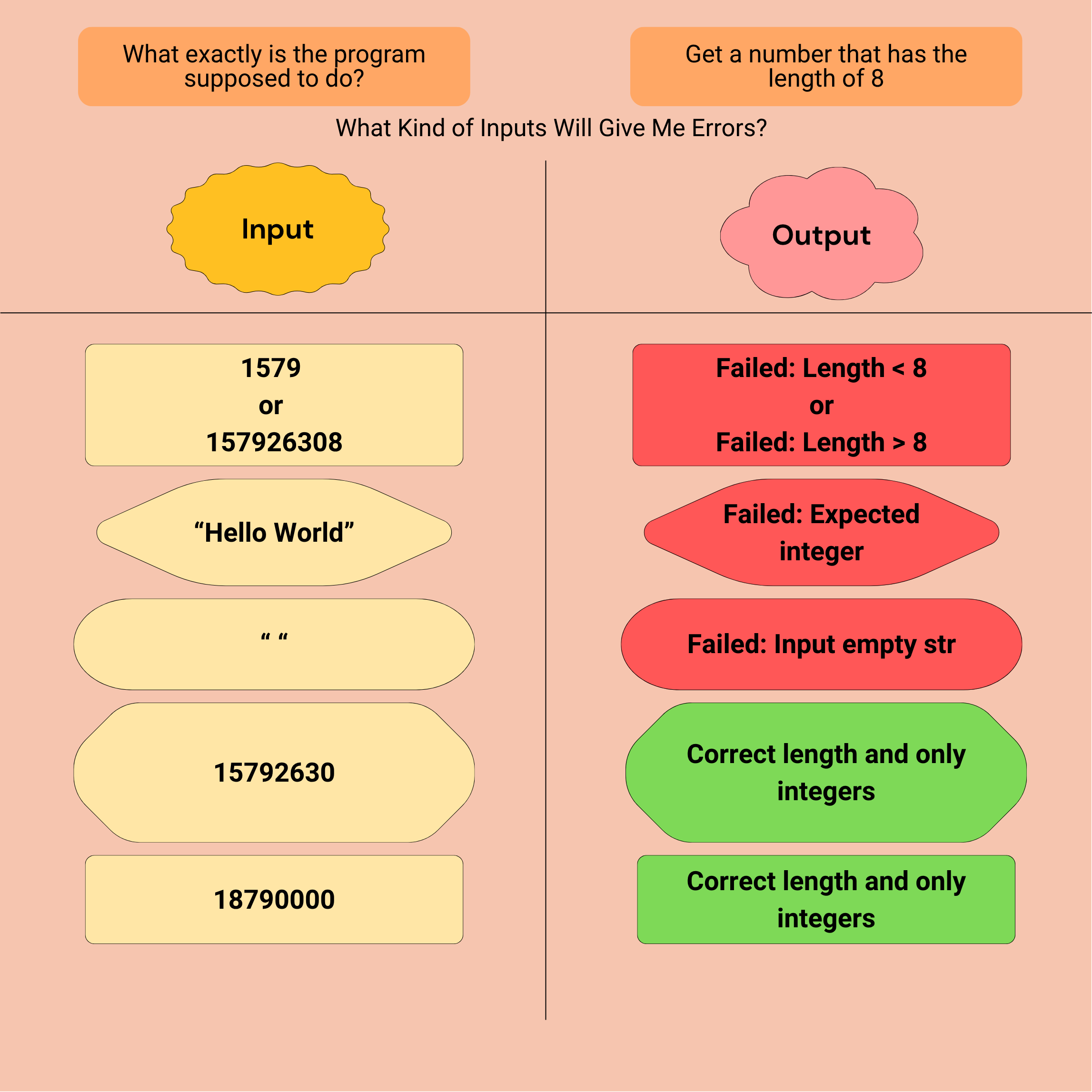 The first step was designing my test cases. I approached this systematically by asking a few simple questions: - What exactly is the program supposed to do? - What conditions will fulfill the requirements of the task? - What kinds of inputs might cause errors?